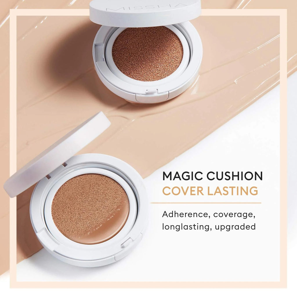 Why Choose MISSHA Magic Cushion Cover Lasting SPF50+/PA+++ (No. 21)? MISSHA’s Magic Cushion Cover Lasting SPF50+/PA+++ is the ideal product for those who want to achieve a perfect, natural-looking complexion with added sun protection. Offering full coverage, hydration, and long-lasting wear, this cushion foundation is a versatile product that’s perfect for everyday use. Whether you’re looking to conceal imperfections or protect your skin from harmful UV rays, this cushion foundation delivers exceptional results with ease.