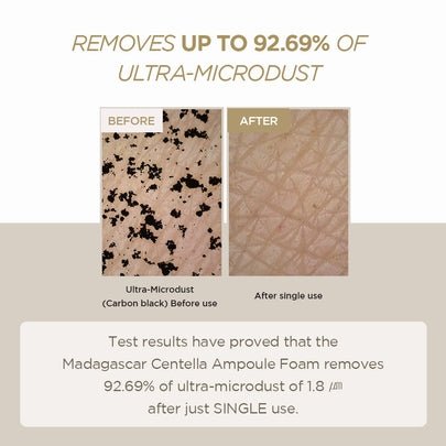 - Follow with Centella Ampoule Foam on damp skin, lather well, and rinse off.