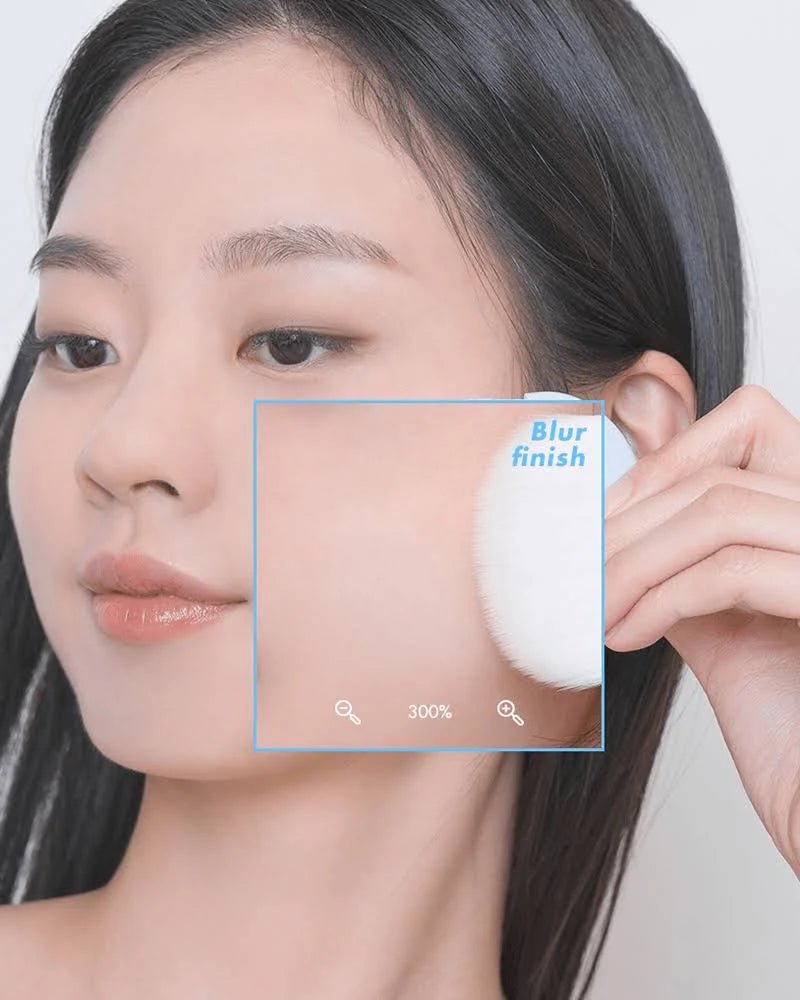 - After applying foundation and concealer, lightly dust the [rom&nd] Better Than Finish powder all over your face using a fluffy brush or powder puff.