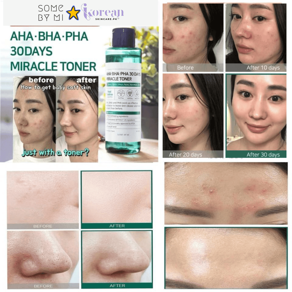 Transform your skin in just 30 days with the cult-favorite [SOMEBYMI] AHA.BHA.PHA 30 Days Miracle Toner β a powerful exfoliating and acne-fighting toner that delivers visible results. Formulated with AHA, BHA, and PHA, this toner gently exfoliates dead skin cells, unclogs pores, and clears impurities while maintaining the skin's natural moisture barrier.