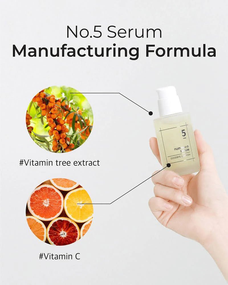 Say goodbye to dark spots and post-acne marks with the [Numbuzin] No.5 Goodbye Blemish Serum. This powerful Korean serum is formulated with Niacinamide, Licorice Root Extract, and a potent blend of brightening and soothing ingredients that target pigmentation, acne scars, and uneven skin tone. Its lightweight and hydrating formula absorbs quickly without clogging pores, making it perfect for daily use – even for sensitive and blemish-prone skin.