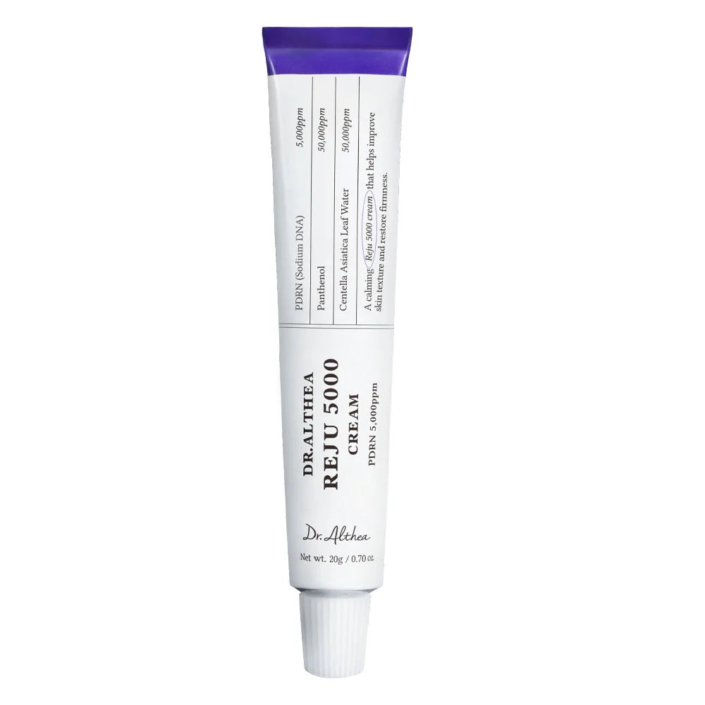 Dr. Althea Reju 5000 PDRN Cream 20g is an intensive Korean regenerating cream formulated to support skin repair, improve elasticity, and strengthen the skin barrier. Powered by PDRN (Polydeoxyribonucleotide) 5000 ppm, this advanced formula helps accelerate skin recovery, soothe irritation, and restore healthy-looking skin.